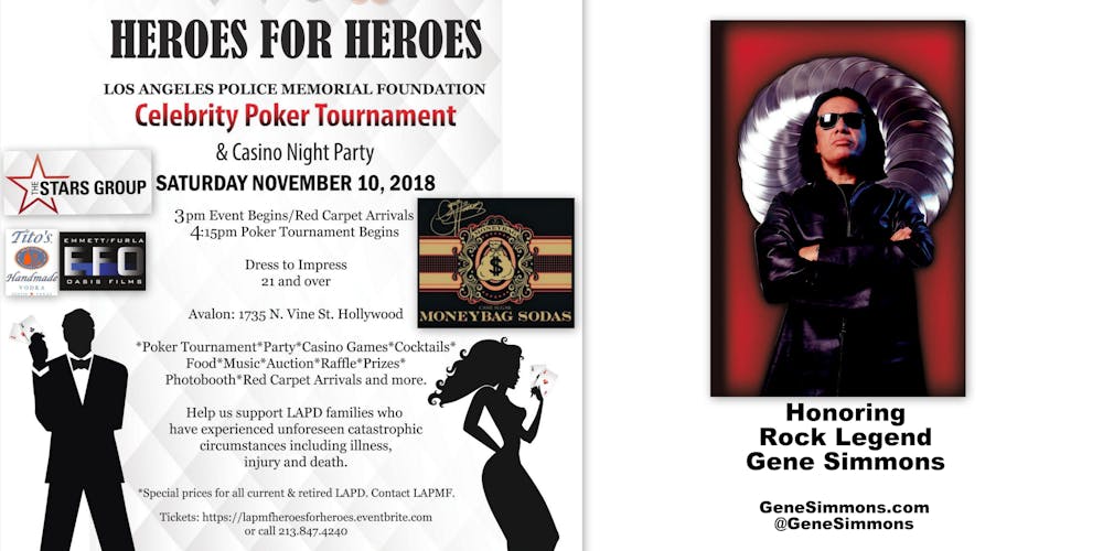 Gene Simmons to be honored at 2018 LAPMF Heroes for Heroes Celebrity Poker Tournament
